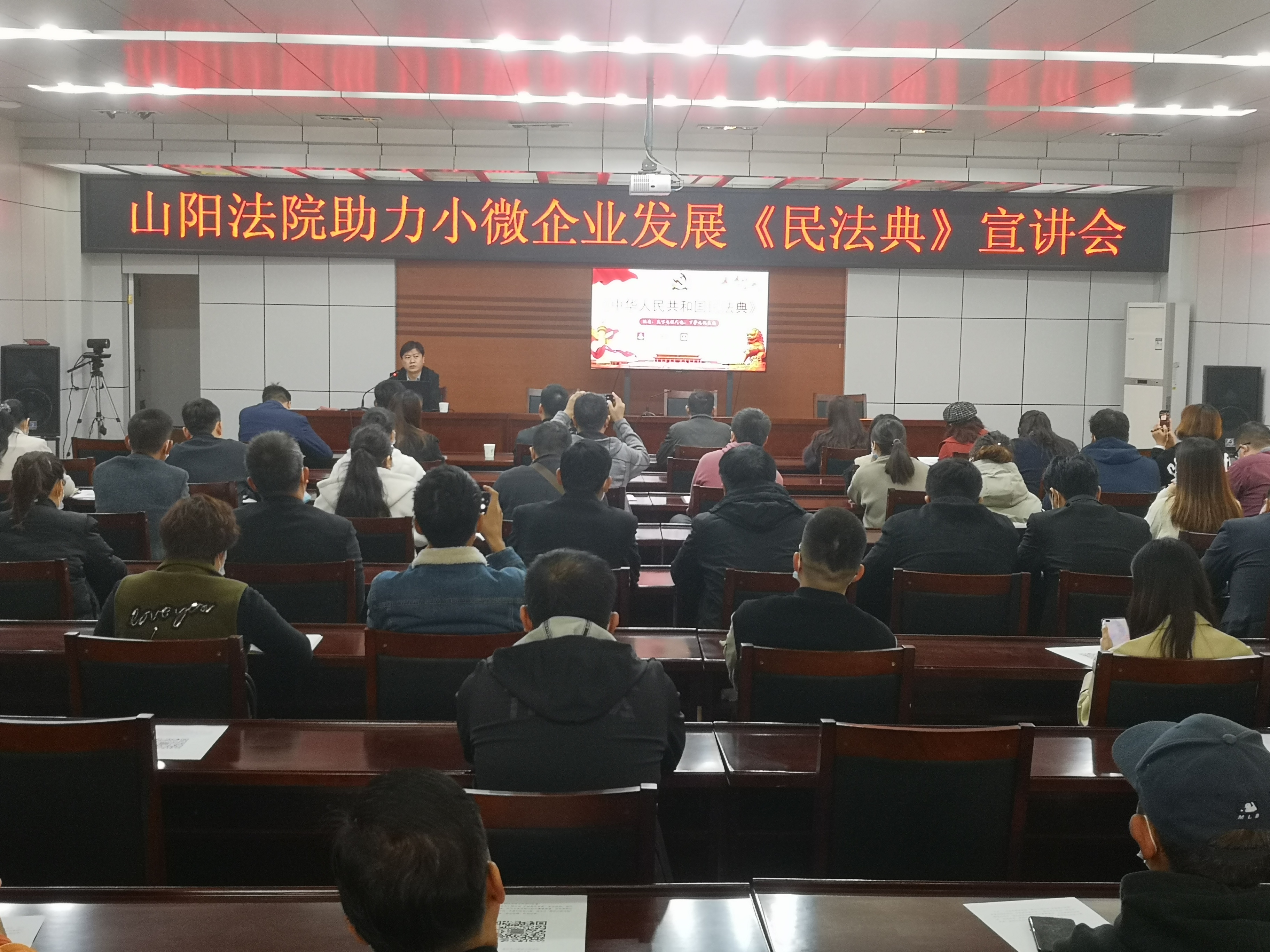 为贯彻落实关于优化营商环境的重大决策部署,扎实做好“六稳”工作、落实“六保”任务,发挥服务保障企业发展的司法职能,10月17日上午,焦作市山阳区人民法院邀请焦作市小微企业商会会员单位负责人及其他企业相关人员开展助力小微企业开展《民法典》宣讲专项活动。会议由山阳区法院党组副书记、副院长陆立新主持,山阳区政法委副书记刘洪涛出席会议。