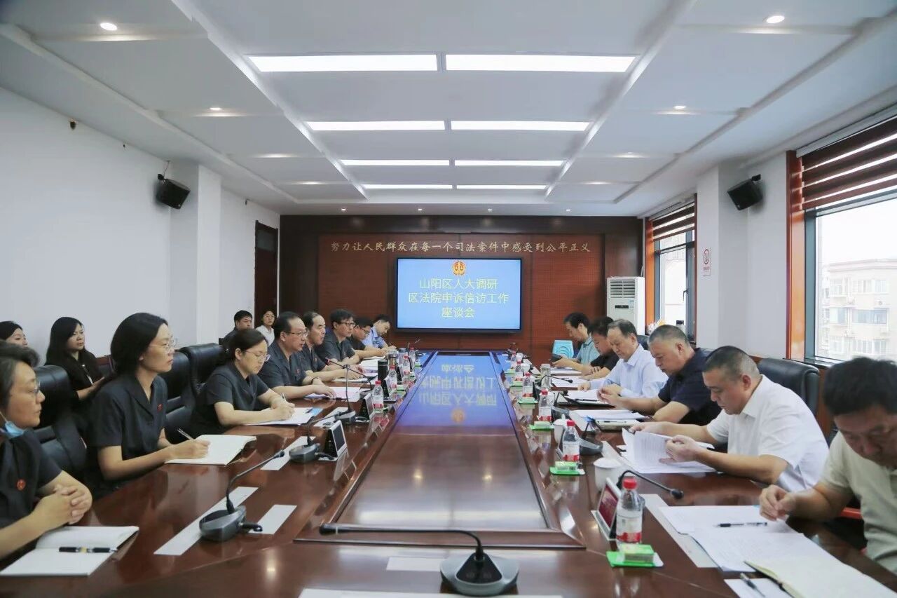 为深入了解法院申诉信访工作实际开展情况,切实解决人民群众合理诉求,维护群众合法权益,促进社会和谐公平正义。9月17日,山阳区人大常委会副主任王社红带领部分常委会组成人员、人大代表,对山阳区法院申诉信访工作进行调研并召开座谈,山阳区法院党组书记、院长王曙光全程陪同并主持会议,山阳区法院全体班子成员及各部门负责人参加座谈会。