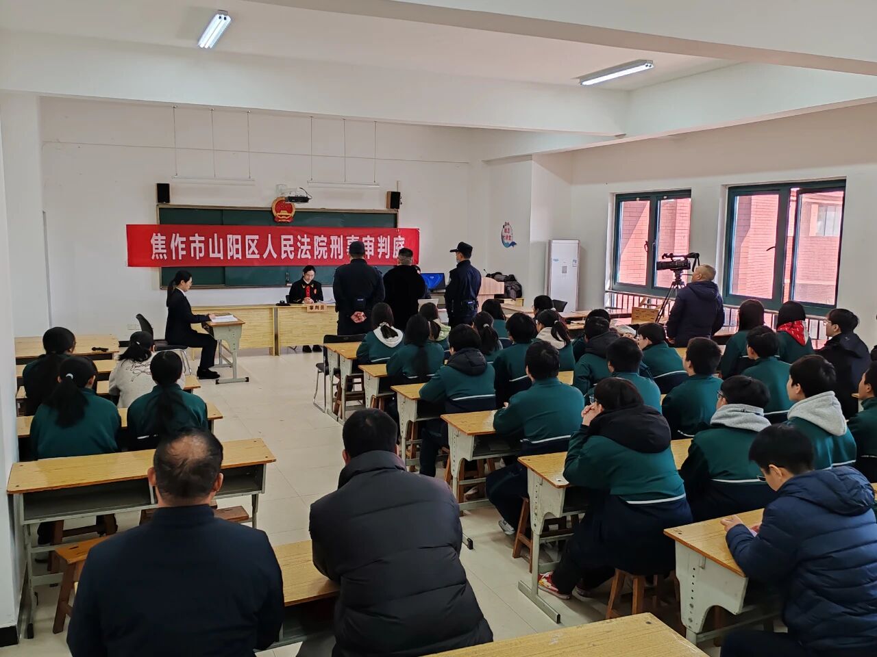 未成年人是祖国的未来、民族的希望。保护未成年人是一首“交响乐”,无论在前端未雨绸缪还是在中端实质化解,抑或在后端延伸帮教,都离不开多重力量的支持。近年来,电信网络诈骗犯罪持续高发,严重侵害了人民群众的财产安全。为切实加强未成年人的法治教育,提高未成年识别和防范电信网络诈骗的能力。11月25日,山阳区法院刑事审判庭将庭审“搬进”校园,公开审理了一起掩饰、隐瞒犯罪所得罪案件,告诫学生法律“红线”不可逾越。